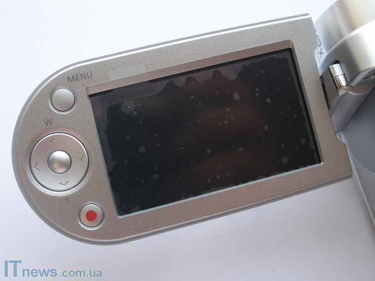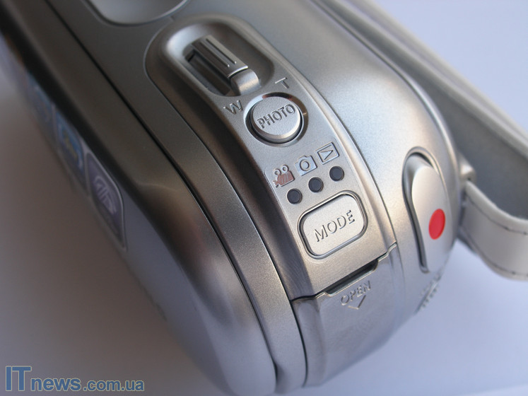 Правее от описываемой панели идут две кнопки управления. Кнопка с нанесенной на ней красной точкой отвечает за запуск камеры в рабочее состояние, а кнопка снизу с оригинальной подписью power, разумеется, за старт камеры в режиме видеозаписи. И, наконец, две кнопки, размещенные на верхнем торце. Кнопка с подписью photo позволяет осуществлять быстрый переход из режима видео в режим фото, а кнопка выше – регулировщик зума.