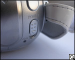 На правой боковой грани, если рассматривать устройство объективом от себя, реализована большая поворотная вставка из пластика. Радиус вращения равен 180 градусам. В свою очередь на этой вставке виднеется ремешок с регулировщиком – своеобразная страховка для камеры.
