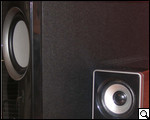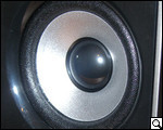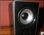 В завершение несколько слов о реализации динамика. Согласно общей концепции динамик сабвуфера расположен на передней глянцевой панели. Здесь, если сравнить переднюю панель сабвуфера с панелью колонок, снова явно прослеживается дань дизайну, которая хотя и реализована с эстетической точки зрения на "отлично", все же с практической точки зрения, а именно защищенности рабочих поверхностей от воздействия внешних источников оставляет желать лучшего. Как и на колонках, глазок на сабвуфера ничем не прикрыт. Выводы нетрудно сделать самим.