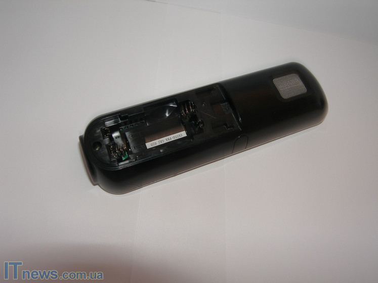 Из всех возможных функциональных элементов, реализованных на тыльной стороне, стоит отметить только сеточку аккустического барабана (детальнее о нем ниже), а также аккумуляторный отсек. Аккумуляторный отсек, к слову говоря, содержит пальчиковые аккумуляторы, типа ААА (идут в комплекте).