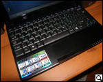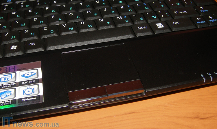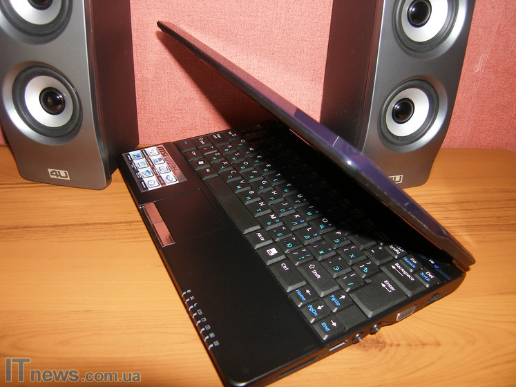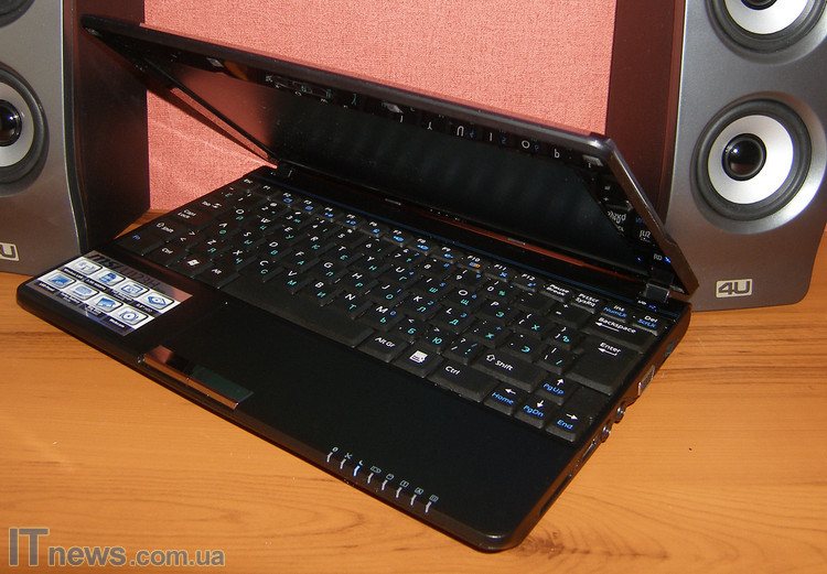 Далее идет достаточно обычная клавиатурная раскладка, аналогичная раскладке в U120, U115 и U100. Если из вас, дорогие читатели, уже кто-либо работал с перечисленными моделями, он без лишних объяснений поймет, какие недостатки и преимущества такой раскладки. От себя же можем добавить следующее – клавиатура в корне неплохая, размещена по всей рабочей поверхности. Кнопки большие, но благодаря тому, что они размещены чрезвычайно близко друг к другу, ошибочных нажатий не избежать. По крайне мере на первых порах.