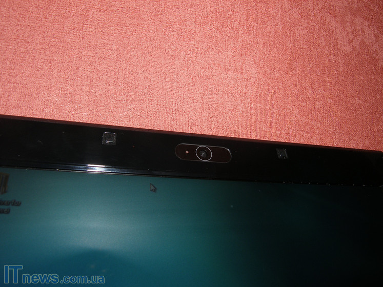 На верхней части окантовки расположен глазок встроенной камеры, а также едва заметный глазок подсветки. Матрица камеры здесь достаточно большая – 2 Мп, что на сегодня не всегда свойственно даже хорошим ноутбукам.