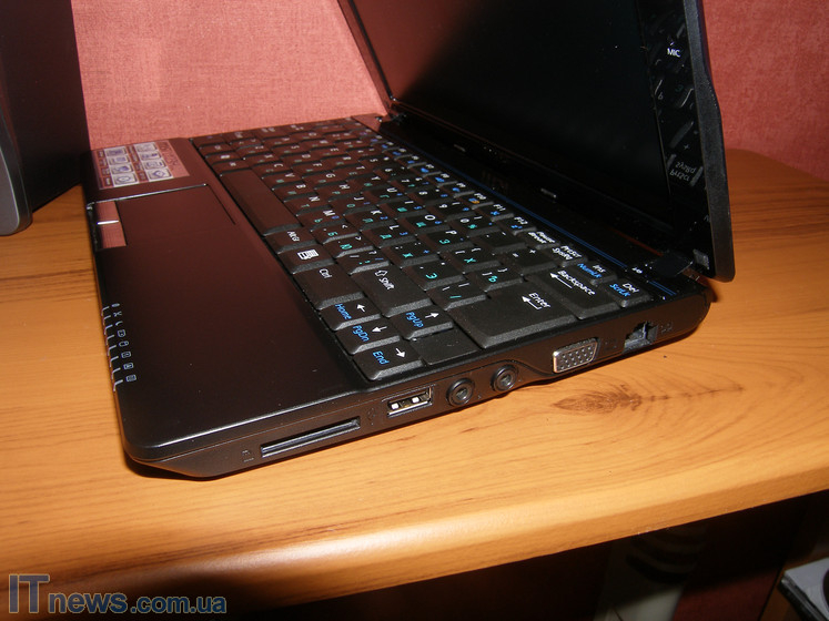 На правой боковой грани размещен сетевой разъем, разъем VGA, а также интерфейсы под микрофон и наушники, порт USB и небольшой кардридер.