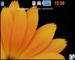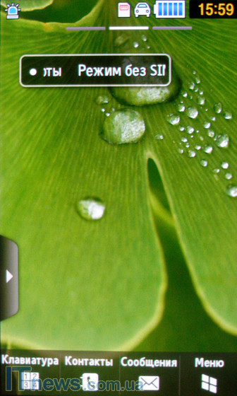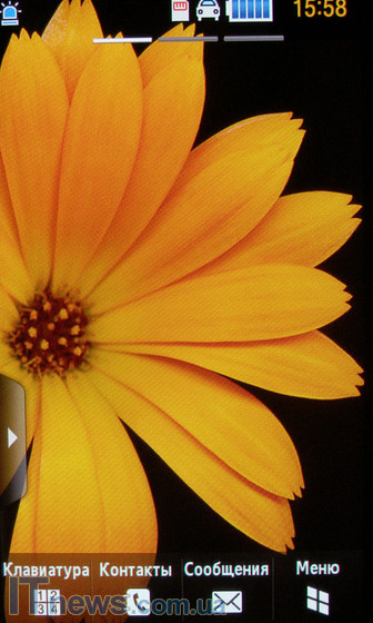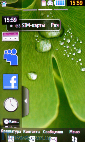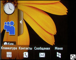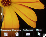 Внизу главной страницы экрана расположены четыре неменяющиеся иконки – "клавиатура", "контакты", "сообщения" и "меню". Эти иконки нельзя ни перепрограммировать на пользовательском уровне, ни изменить как-либо с переходом по меню.
