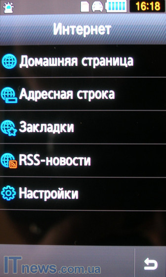 Приложение "Интернет" является традиционным веб-браузером для веб-серфинга. В меню этого приложения сосредоточены все необходимые настройки, а также rss-ленты новостей.