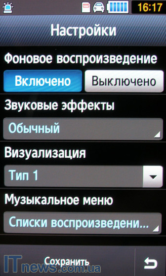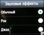 Среди настроек стоит отметить возможность "фонового воспроизведения", выбор одного из "звуковых эффектов" (настроек эквалайзера), выбор типа визуализации и др.
