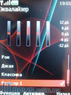 Медиа приложения в терминале представлены музыкальным плеером, FM-приемником, а также работой встроенной камеры в режиме фото или видеосъемки. Из других опций стоит отметить приложение "Обмен в OVI", работа с которым знакома нашему читателю по обзору смартфона Nokia N97 (обзор здесь).