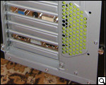 Несколько ниже размещена еще одна сеточка, а также ряд горизонтально расположенных панелей. Сеточка выполняет аналогичную собратьям роль. Что же касается панелей, их роль определенно схожа с ролью горизонтальных сеточек на передней панели корпуса – их используют при необходимости вывода каких-либо функциональных разъемов или интерфейсов.