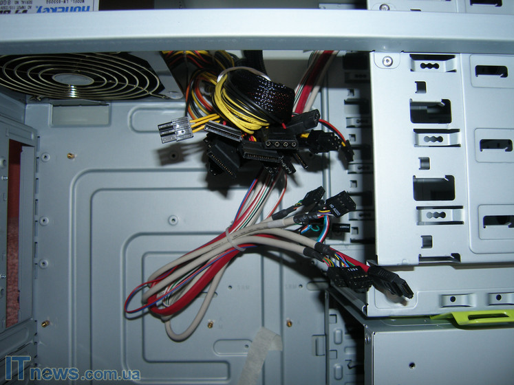 К сожалению, в комплекте поставки мы не обнаружили стяжек для проводов, что априори вносит некоторые коррективы при сборке системы. Дело в том, что даже проводов от USB интерфейсов, а также от блока питания, достаточно большое количество, а если добавить к этому еще провода от различных переключателей, переходников и тому подобных вещей, которые будут соединять различные комплектующие системного блока, не трудно себе представить, что нас ожидает в итоге. Впрочем, мы решили потратить немного времени, чтобы собрать системы из подручных элементов.