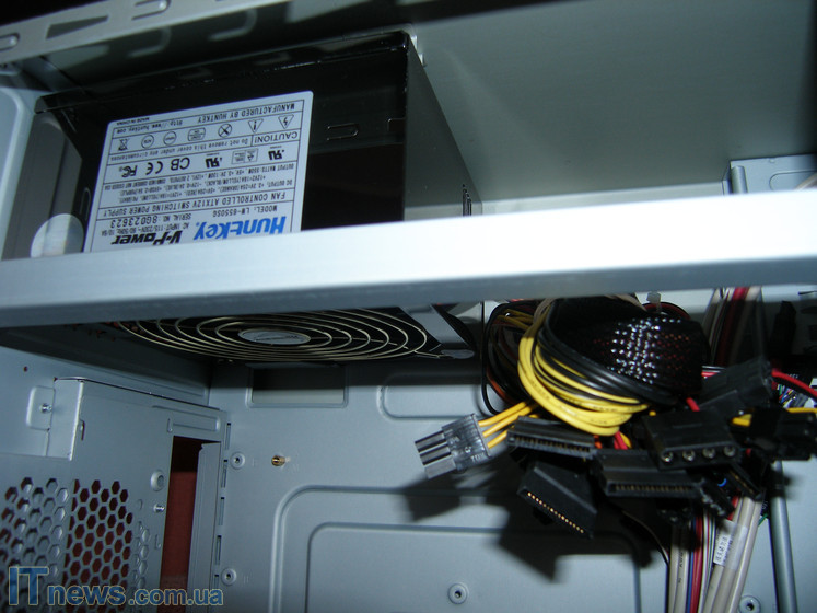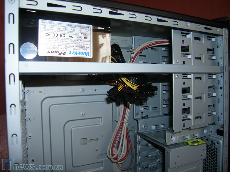 Блок питания традиционно для корпусов Huntkey обшит в зеркальный материал – на ощупь нам показалось, что перед нами металл. Ну, а что касается каркаса, откровенно порадовало хорошее расположение всех элементов в нем.