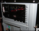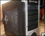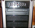 Выше описываемого элемента расположено несколько вставок. Предназначение этих вставок преимущественно декоративное. Тем не менее, при необходимости пользователь может смонтировать одну (или несколько – зависит от ситуации), из вставок и вывести на ее место привод для оптических дисков, примером как это сделали мы, в процессе изучения корпуса. Насколько изменится общая картина панели при этом, пользователь решит, изучив фото. Справедливости ради стоит отметить, что упомянутую вставку можно и не вынимать – во время открытия движущейся части привода она может попросту отгибаться от панели на специальных шарнирах. Однако на наш взгляд, такое положение дел не совсем хорошо с точки зрения удобства!