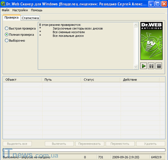 Во время проведения процедуры "Полной проверки" проверяются все локальные, а также сменные диски плюс загрузочные сектора всех дисков.