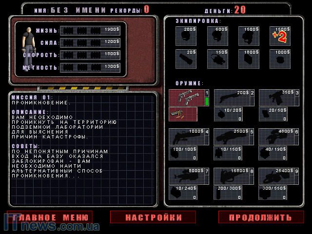 Настоящая "беда" нашего героя постигает только после четвертого уровня – все до этого можно считать "детским лепетом буквально в несколько минут. И только с пятого уровня начинается настоящая "война". Залпы ракет, расплескивание радиации, атаки пауков и великанов – все это, а также огромное количество других "приключений" ждут нашего бойца здесь. Именно поэтому на "легких уровнях" боец должен позаботиться о максимальном вооружении – собрать все, что будет "расставлено" для него в лабораториях и других помещениях, а также вскрыть "тайные" комнаты, которые обозначены схематически большими щелями на стенах. Уже седьмой уровень пройти практически не возможно, если у игрока не будет достаточно количества боезапасов, а также денег (последние насчитываются за успешное прохождение уровней, а также собираются игроком во время прохождения их), на покупку самого эффективного оружия.