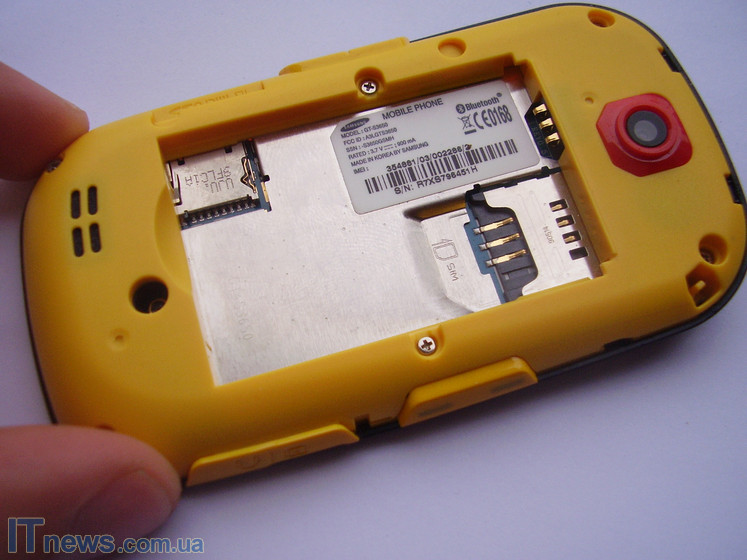 Под аккумулятором распложен слот для карт расширения памяти, а также картодержатель для SIM-карты.