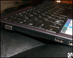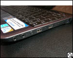 На левой боковой грани реализован разъем для кабеля питания устройства, разъем для подключения внешнего монитора, а также небольшая сеточка системы охлаждения, плюс интерфейс eSATA и еще один USB разъем.