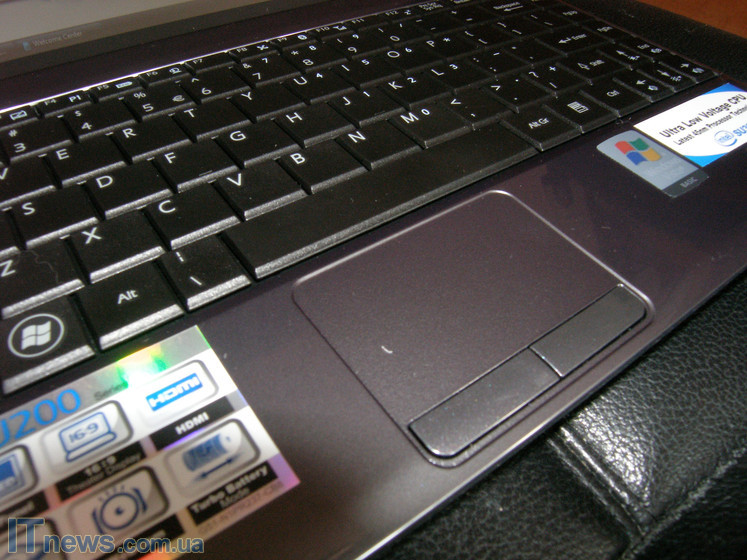 Справа и слева от тачпада имеются наклейки с различной технической информацией.