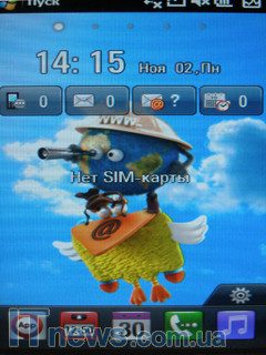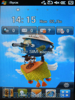 На самом верху главной страницы смартфона расположено меню "Пуск". Оно отвечает за переход к главным приложениям, функциям и другим схемам управления в терминале, уже с оболочкой WM6.1. Детальнее на видео ниже.