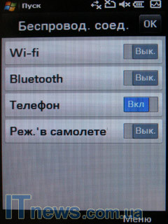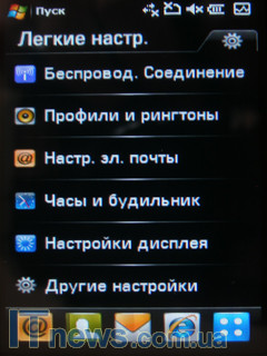 В подразделе меню "Настройки" расположен модель беспроводного обмен данными Bluetooth, с чрезвычайно простыми настройками и режимами работы, менеджер синхронизаций Active Syns, а также протокол настройки Wi-Fi, менеджер настройки клиента электронной почты, а также клиент выбора режима синхронизации смартфона с компьютером или ноутбуком.