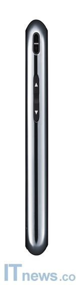 На левой боковой грани расположена клавиша-качелька регулировки звука, а также прорезь в форме ушка для крепления страховочного шнурка.