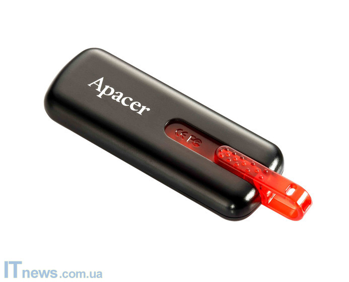 Простое решение в сегменте флеш-накопителей от Apacer. Девайс интересен сравнительно прочным выдвижным USB-коннектором, интуитивно понятным управлением, а также низкой ценой.