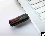 Независимо от цвета корпуса, в нагрузку к нему реализован небольшой красный ползунок, посредством которого и выдвигается USB-коннектор. Этим же ползунком пользователь может закрепить коннектор, так что при синхронизации его с USB-интерфейсом компьютера коннектор не будет входить в корпус накопителя.