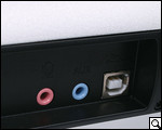 Помимо разъема для кабеля линейного входа, на упомянутой панели управления расположены также разъем для штекера микрофона и разъем для уже упомянутого USB кабеля. Кстати, если на одном из краев USB кабеля имеется штекер USB, то на другом расположен штекер, по форме напоминающий штекер кабелей, подключаемых к проводным принтерам. Почему решено было реализовать именно так, лично мне непонятно, впрочем, как и непонятна целесообразность самого соединения посредством USB кабеля.