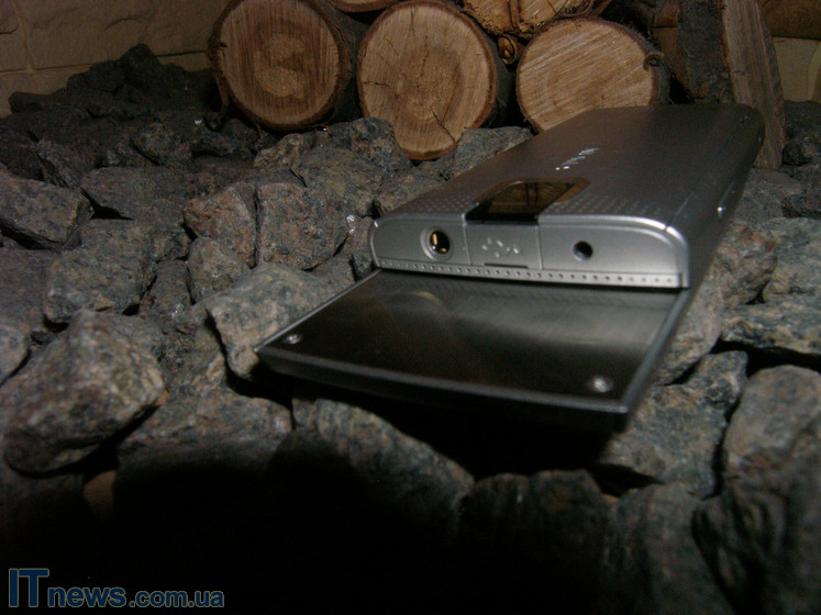 Возле верхнего торца на тыльной панели расположено окошко встроенной камеры. Судя по надписи чуть выше окошка, мы имеет дело с 3,2-мегапиксельной матрицей.