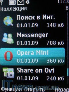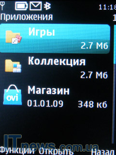 | Приложения | Данный подраздел распределен на три направления: "Игры", "Коллекция", "Магазин". "Игры" - содержит в себе около 10-ти игр. В Коллекции находятся следующие приложения: конвертер, контакты OVI, мировые часы, поиск в Интернет, а также приложение Opera MINI и др. |