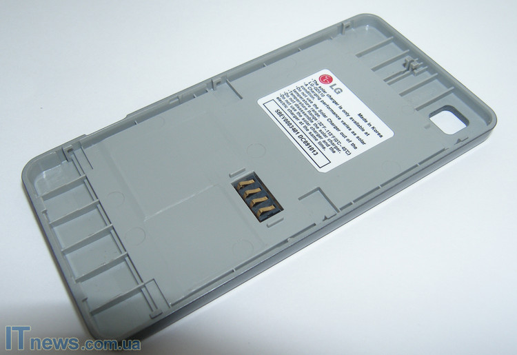 Выполнена зарядка в форме крышки аккумуляторного блока. На теле также реализовано отверстие под глазок встроенной камеры, а также имеется нанесение эмблемы компании-производителя. Хотя эмблема и нанесена красками, тем не менее, выполнение ее на хорошем уровне.