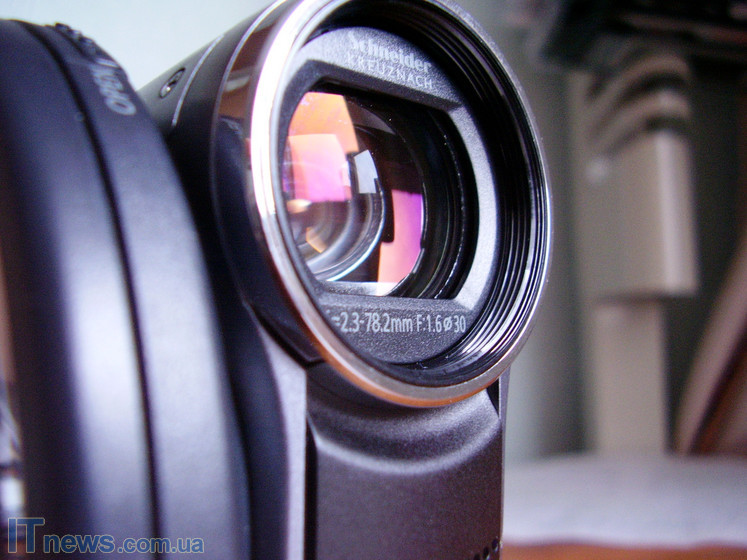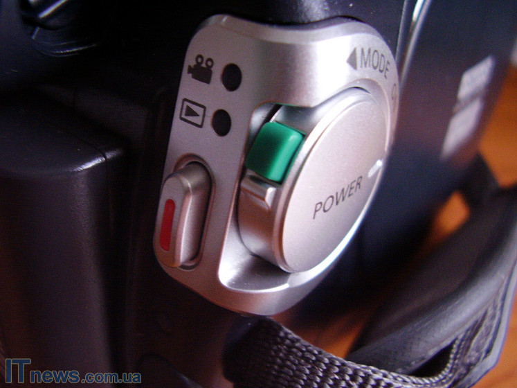 Главный навигационный киносъемочный пункт камеры находится на тыльной стороне аппарата. Прежде всего, внимание привлекает кнопка power, которой здесь сразу дано три функции: включения/выключения питания аппарата, а также переход в режим просмотра контента. Рядом с этой кнопкой расположены индикаторы, показывающие выбранный режим работы камеры. Над этими индикаторами расположен разъем для видеокабеля. Изучая кнопки управления под камерой, мы отметили красную кнопку, отвечающую за включение/выключение записи, и несколько ниже ее разъем для кабеля зарядки, который производителем спрятан за плотной резиновой заслонкой.