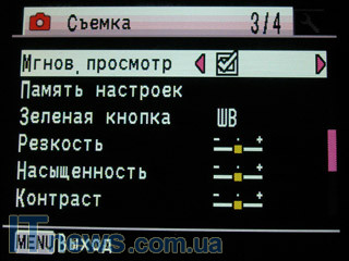 Кроме того, при помощи навигационного джойстика можно активировать и настроить вспышку, а также выбрать нужный "режим фокусировки" и "режим съемки".