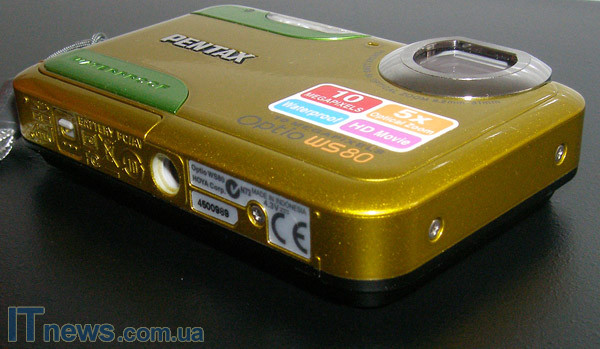 В Pentax Optio WS80 практически каждая из боковых граней получила в своеобразную нагрузку некоторое количество функциональных элементов.
