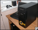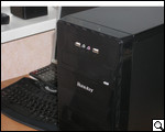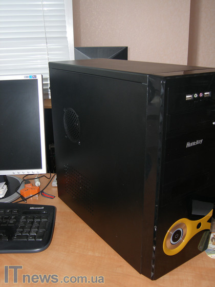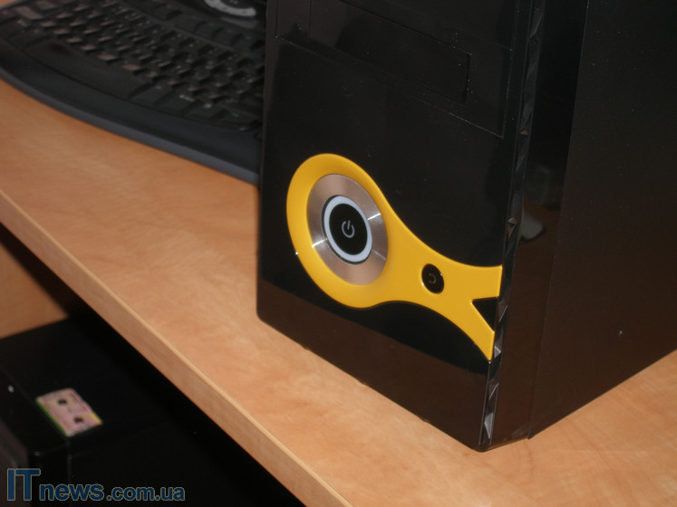 Основная декоративная нагрузка легла традиционно на переднюю панель. Панель пластиковая, глянцевая. Материал изготовления монотонный, что в определенном смысле подчеркивает строгость, и вместе с тем некую лаконичность. Кто бы что ни говорил в отношении применения глянцевых материалов в корпусах настольных ПК, но это действительно выглядит красиво.