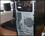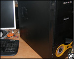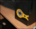 В главной из боковых панелей вырезано несколько вентиляционных сеток. Разъемы на сетках одинаковые, однако, форма самих сеток разная. К одной из сеток на внутренней стороне панели прикреплена большая пластиковая колба. В нее во время работы процессорного кулера происходит вдув воздуха, таким образом усиливая эффект охлаждения процессора.