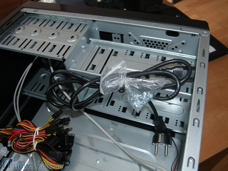 Крепление жесткого диска (или дисков) затруднений не вызывает. Диск легко входит в вывод 3,5 дюйма, и также легко фиксируется на панели при помощи крепежных шурупов.