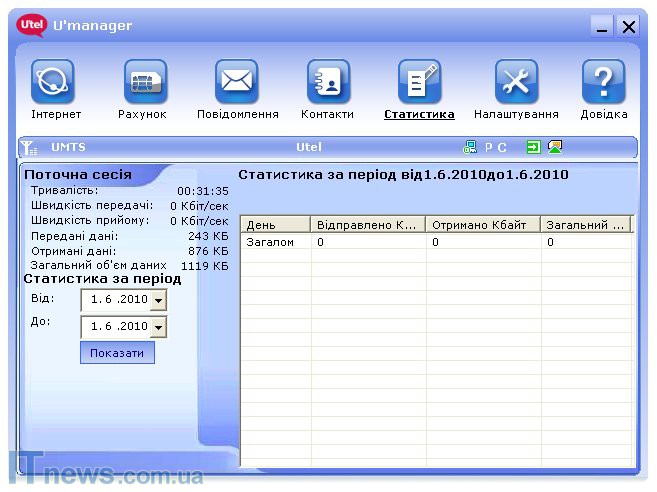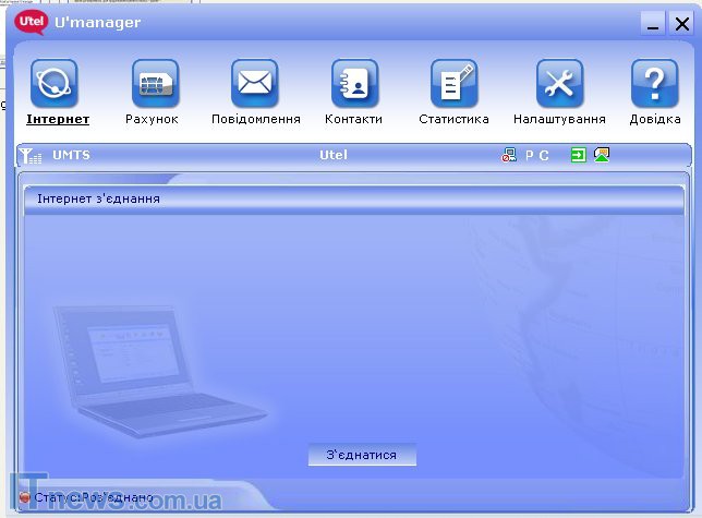 Далее запускается U-Manager - довольно простая программа для управления соединением. Нажимаем кнопку"Соединиться" - и вперед. Дальше можно контролировать расход трафика в специальном окне.