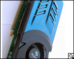 Ближе к тыльному торцу видеокарты виднеются медные трубки. Трубки также являются компонентами механизма охлаждения системы. Все выше описанное "трио" во время нагрузок со своей непосредственной задачей справляется отлично – даже при критических нагрузках температура выше 50 градусов у нас не поднималась. Уровень шума кулера с учетом сильных нагрузок также пребывал в пределах нормы.