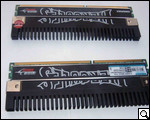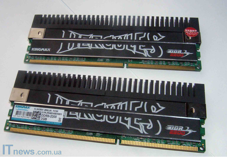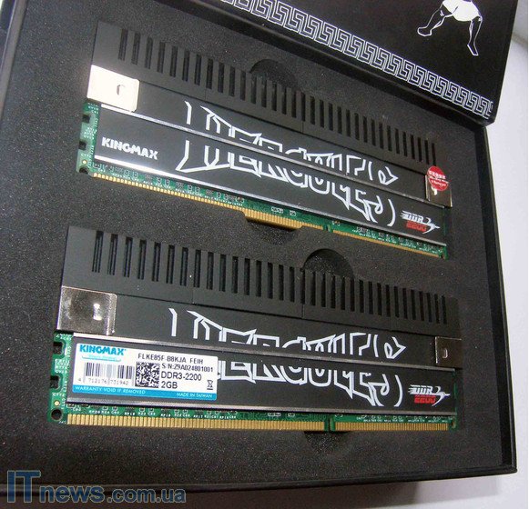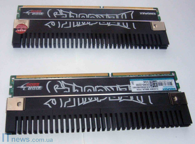Без радиаторов визуально модули легко спутать с другими – на платах кроме распайки чипов, а также красного крошечного фирменного модуля с надписью Kingmax на одной со сторон платы, нет больше ничего, даже знакомой всем модулям наклейки с техническими данными о продукте, а также маркировкой.