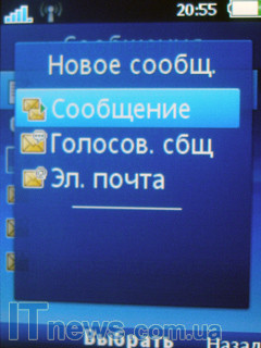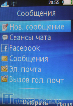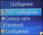 В подпункте меню "Сообщения" кроме работы со стандартными менеджерами SMS и MMS, пользователь может также заходить на свою страничку в Facebook, работать с клиентом электронной почты, а также менеджером голосовой.