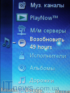Приложение музыкального проигрывателя помимо воспроизведения композиций с памяти телефона либо карты памяти, "умеет" проигрывать файлы также со специальных медиа серверов Sony Ericsson (синхронизация с ними проста, но требует подключения к Интернету по Wi-Fi). Кроме того, плеер может воспроизводить музыку со специальных "Музыкальных каналов" (предварительно их необходимо установить), а также в тестовом режиме проигрывать композиции с сервиса Sony Ericsson, Play Now.