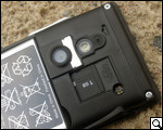 Практически всю тыльную панель прикрывает крышка аккумуляторного блока. На корпус мобильника крышка крепится очень легко, но вместе с тем надежно, а вот к тому, чтобы легко снять ее с петель крепления, в начале пользования придется немного привыкать – первое время процедура неудобна.