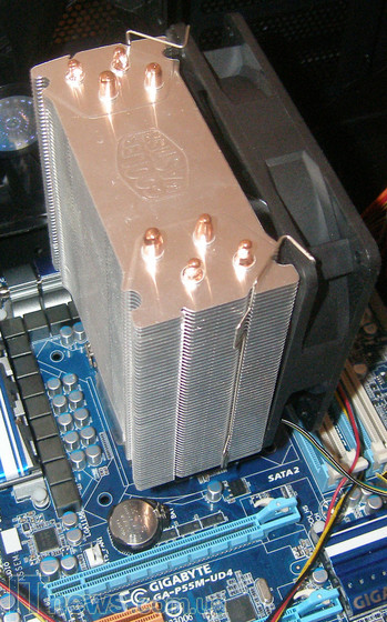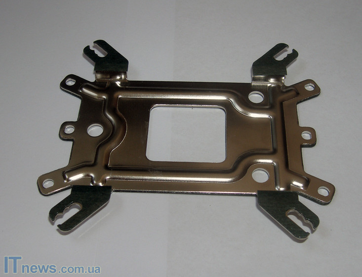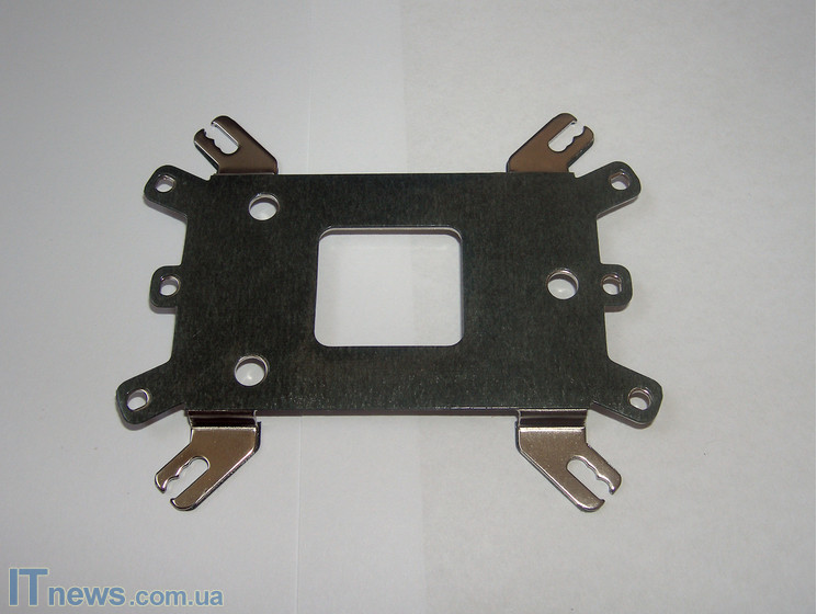 К материнской плате кулер крепится на специальную прижимную пластину. Стоит отметить, что данная пластина также универсальная – подходит к материнским платам с процессорным разъёмом LGA 775/1156/1366/AM2/AM3 – то есть, ко всем новым решениям, что автоматически ориентирует Cooler Master Hyper 212 Plus на самый широкий потребительский сегмент. Для защиты от замыкания на поверхность прижимной пластины наклеен специальный изолирующий материал.