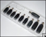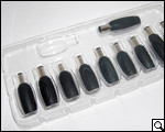 Небольшая путаница в комплекте поставки с количеством переходников. Дело в том, что в комплекте поставки только 10 переходников, тогда как перечень таблицы, в которой расположен перечень производителей ноутбуков, состоит из 12. Кроме того, на полиэтиленовой подставке, на которой размещаются переходники, уготовано место минимум еще для одного переходника. Тем не менее, его здесь нет. Вначале мы было подумали, что переходник в нашем комплекте мог попросту где-либо затеряться, но немного "погуглив", мы нашли ряд изображений Universal Notebook Adapter HKA09019050-7A, в комплекте поставки которого также десять адаптеров и также имеется "свободное место" еще под один. Таким образом, можно судить о том, что в комплекте поставки одиннадцатого переходника нет, что, впрочем, подтверждает и сам производитель в руководстве-вкладыше. Тогда зачем на подставке с переходниками уготован дополнительный разъем под него, так и не понятно.