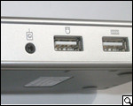 На противоположной боковой грани от той, из центра которой выведены два кабеля с DVI портами, находится DVI коннектор, а также два 3,5 мм разъема для подключения кабеля микрофона и кабеля наушников либо колонок соответственно.