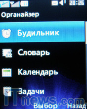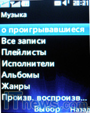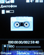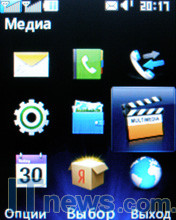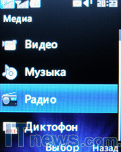 Из подпункта меню "Мультимедиа" пользователь получает доступ к MP3-плееру, FM-приемнику, диктофону, а также возможности запуска встроенной камеры в режиме фото или видеосъемки.