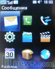 Отметим далее некоторые особенности кнопок в этой Dual SIM модели. Если пользователь пребывает на стартовой странице меню, грани большой четырехпозиционной навигационной кнопки служат кнопками "горячего" запуска приложений. Какие приложения присвоить какой грани, решает сам пользователь.