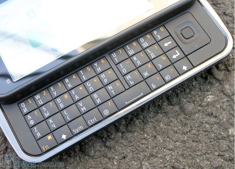 QWERTY-клавиатура в Nokia C6 четырехстрочная. Раскладка в определенной мере разделена на две (откровенно нам непонятно такое разделение), реализован также навигационный джойстик. Адаптация к раскладке не требует огромных усилий – лично у нас уже десяток SMS писалось быстро и без ошибок.