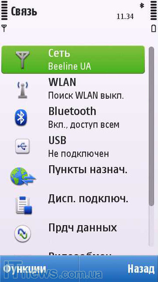В подпункте "Параметры" реализован специальный раздел "Связь", отвечающий за работу модулей Bluetooth и Wi-Fi, а также настроек синхронизации по USB и пр. Здесь же реализован специальный подраздел "Видеообмен".