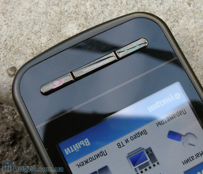 Над дисплеем находится неотъемлемая "атрибутика" 3G-смартфонов – фронтальная камера со вспышкой и датчиком освещенности. Кроме того, здесь же расположен коммуникационный динамик.