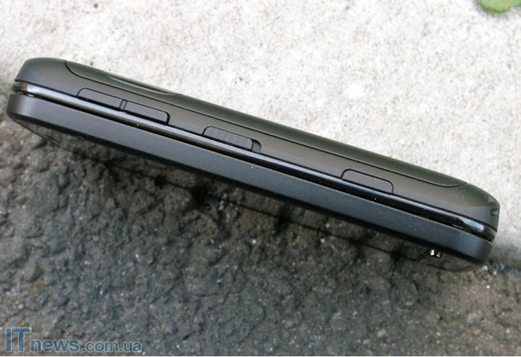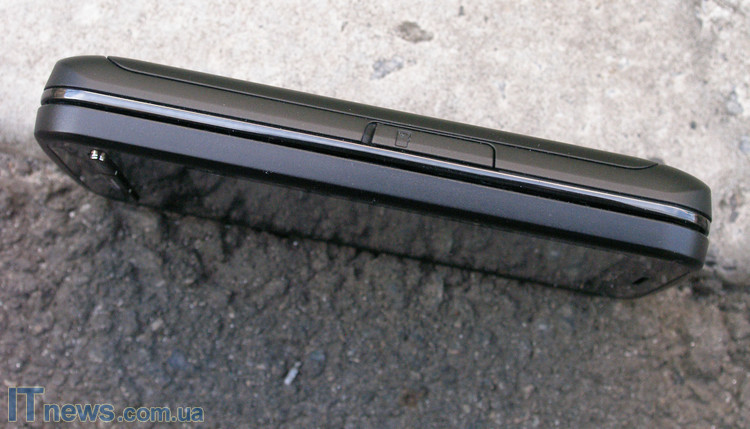 Практически всю лицевую панель слайдера занимает дисплей. Дисплей сенсорный, "защищен" сверху глянцевым пластиком, который, разумеется, достаточно маркий.